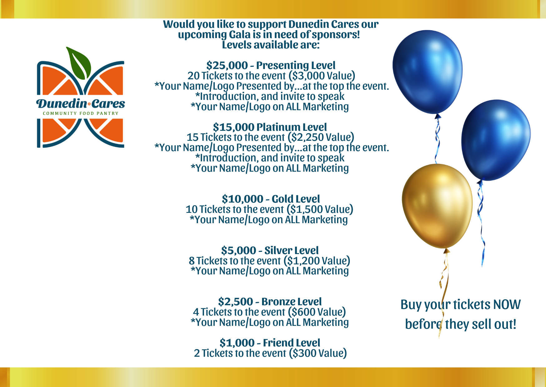 DUNEDIN CARES, INC. IS A NON-PROFIT 501 (C) 3 CHARITABLE ORGANIZATION.